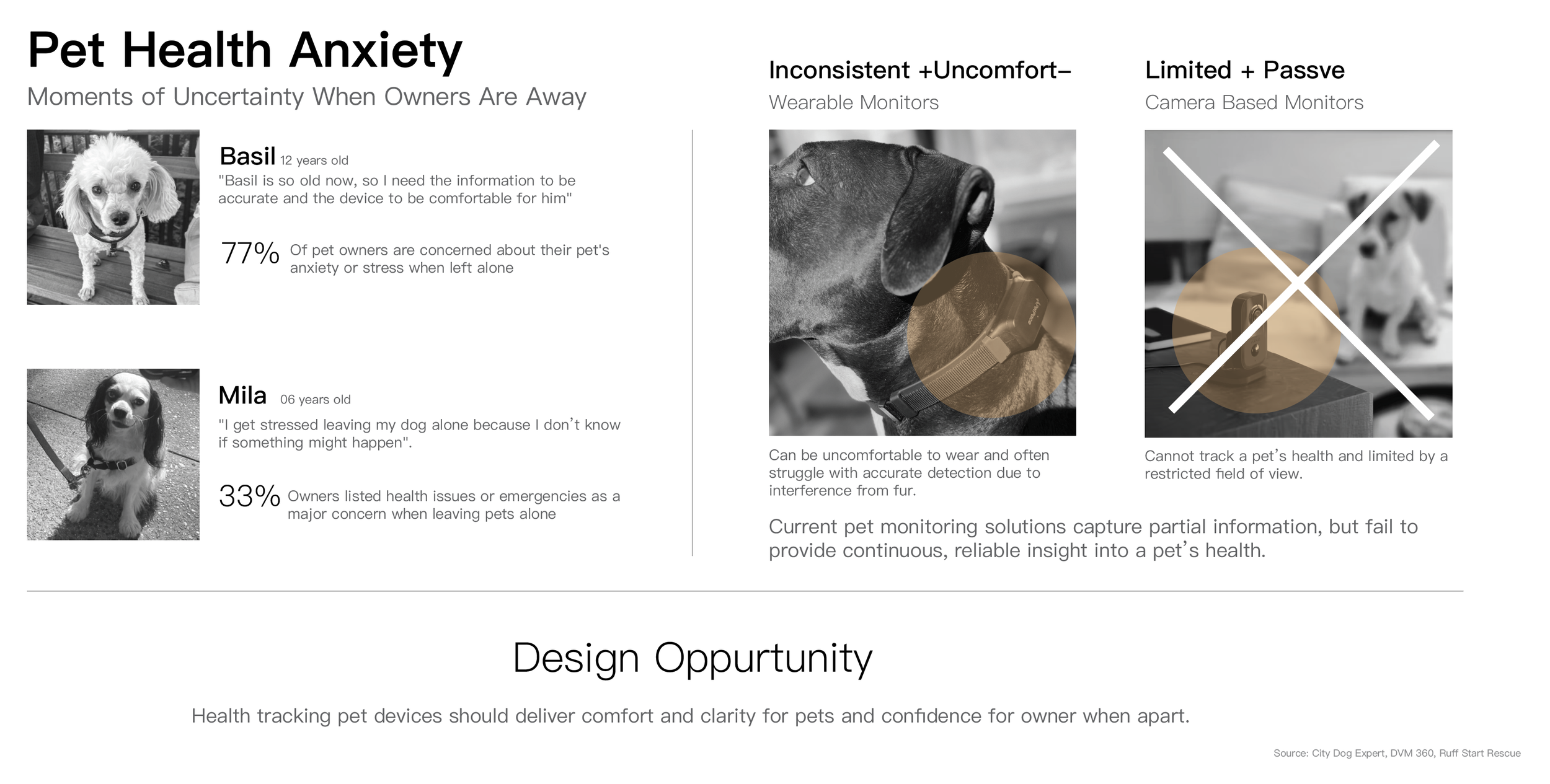 Dog owners, especially those with ill pets, often feel anxious when apart from them. Existing monitors track location and health data but lack emotional reassurance.